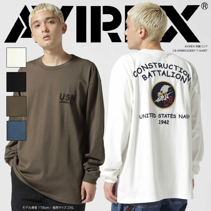 格安新品AVIREX アヴィレックス 刺繍 ロンT CB EMBROIDERY T-SHIRT クルーネック 長袖 ロングTシャツ リブ袖 秋 冬 春 メンズ 男性 6123451 783-2230007